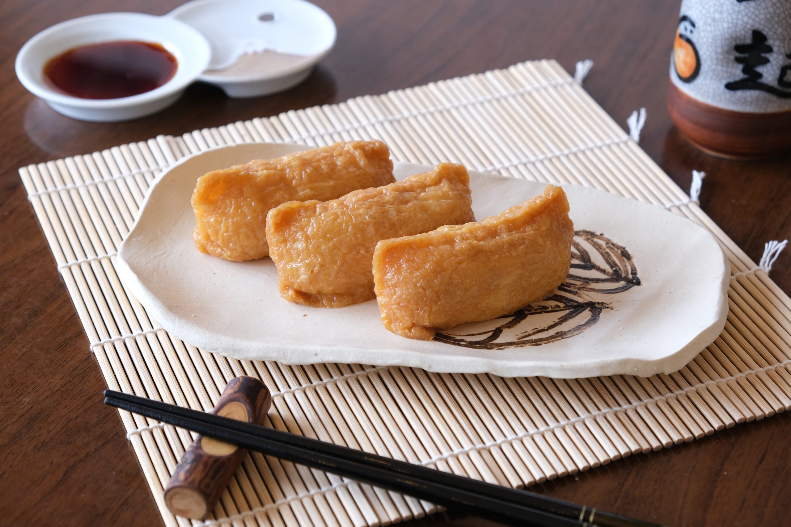 Sushi rice wrapped in sweet fried tofu (V), 3 pieces